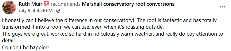 Marshall Conservatory Conversions is a fully licensed and insured roofing company.